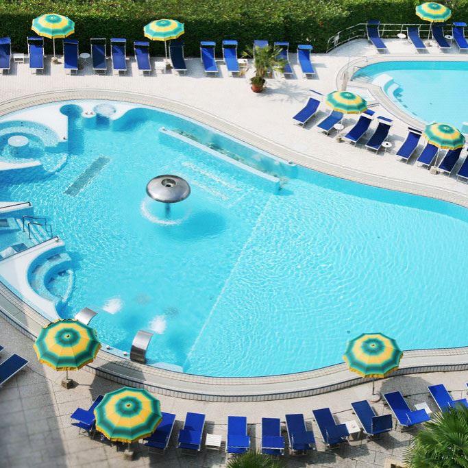 Piscina olimpionica termale: lunga 25 metri e larga 15 metri - La profondità varia tra 90 cm e 2,20 metri