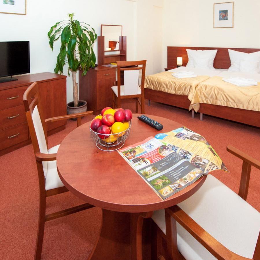 szystkie pokoje są jasne i przestronne, a ich okna typu „francuski” wychodzą na piękny taras, na którym można odpocząć i podziwiać widok na Wzgórza Euganejskie, baseny z jacuzzi, zieleń parku i ogrodu lub część Montegrotto Terme z charakterystyczną dużą kopułą katedry. Widok zmienia się w zależności od położenia pomieszczeń. Wszystkie są wygodne i komfortowe, zmienia się tylko kategoria. Dajemy naszym gościom możliwość wyboru w zależności od ich potrzeb.